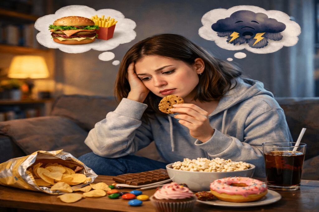 La fame emotiva, invece, compare all’improvviso, è più intensa e spesso legata a uno stato d’animo preciso: stress, stanchezza, noia, tensione.